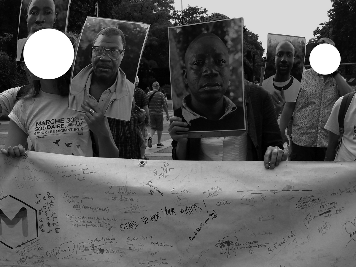 The sensitivities around the uncovering of the face were themselves covered by an explanatory communiqué from Auberge des Migrants to address concerns of entrapment into what the undocumented fear — their desire to cross the border without papers came out of the desperation to change the life of a sans papiers. If the consequences for the undocumented became so apparent, it took us right back to the self-declaration of the sans papiers twenty years ago when Madjiguène Cissé, as described in the No Borders archives, “in close-up, recites eye to eye with the audience: ‘We, the Sans Papiers of France, have decided to come out into the open’”. Today we can at least see how little the ground has moved in any conception of a political constitution for the undocumented.